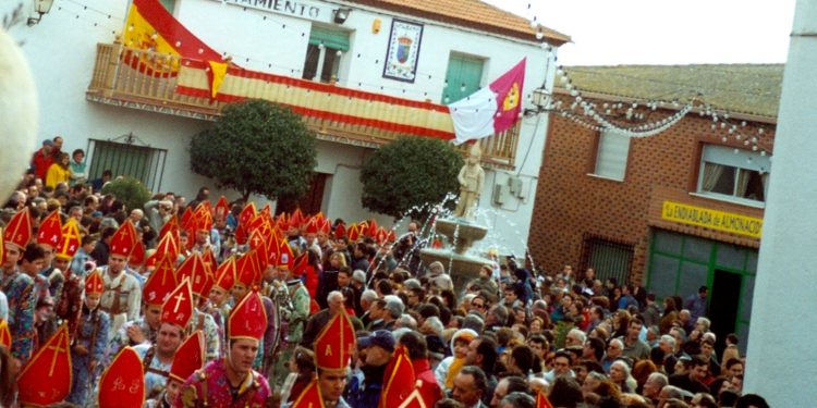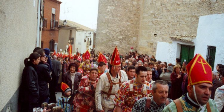 Rescatada de la tierra, ‘peleada’ su propiedad con los vecinos del otro pueblo, Almonacid del Marquesado hace ‘muy suya’ la talla de San Blas. Y así surge el primer detalle de la celebración real, cariñosa, y festiva de La Endiablada, que no es otra que, el lavado de la tierra del rostro del santo con aguardiente. Los diablos ‘avisan’ así, del cierre de la página de su dedicación a La Candelaria y la apertura de otra, con el que fuera médico y obispo de Sebaste, San Blas.